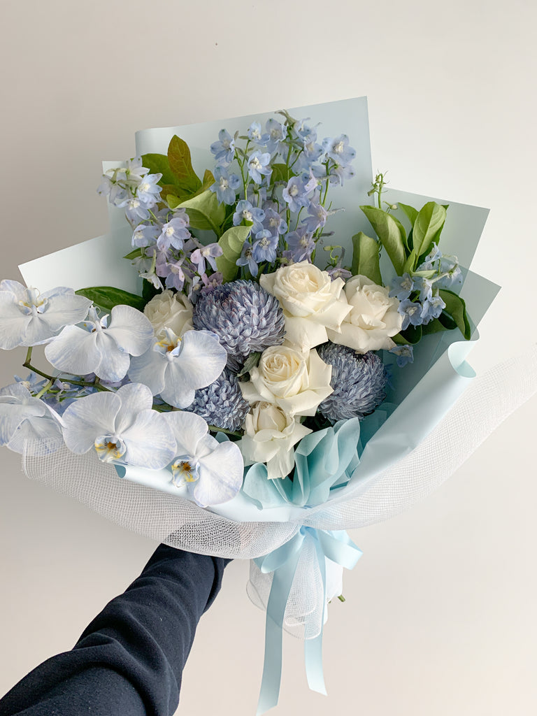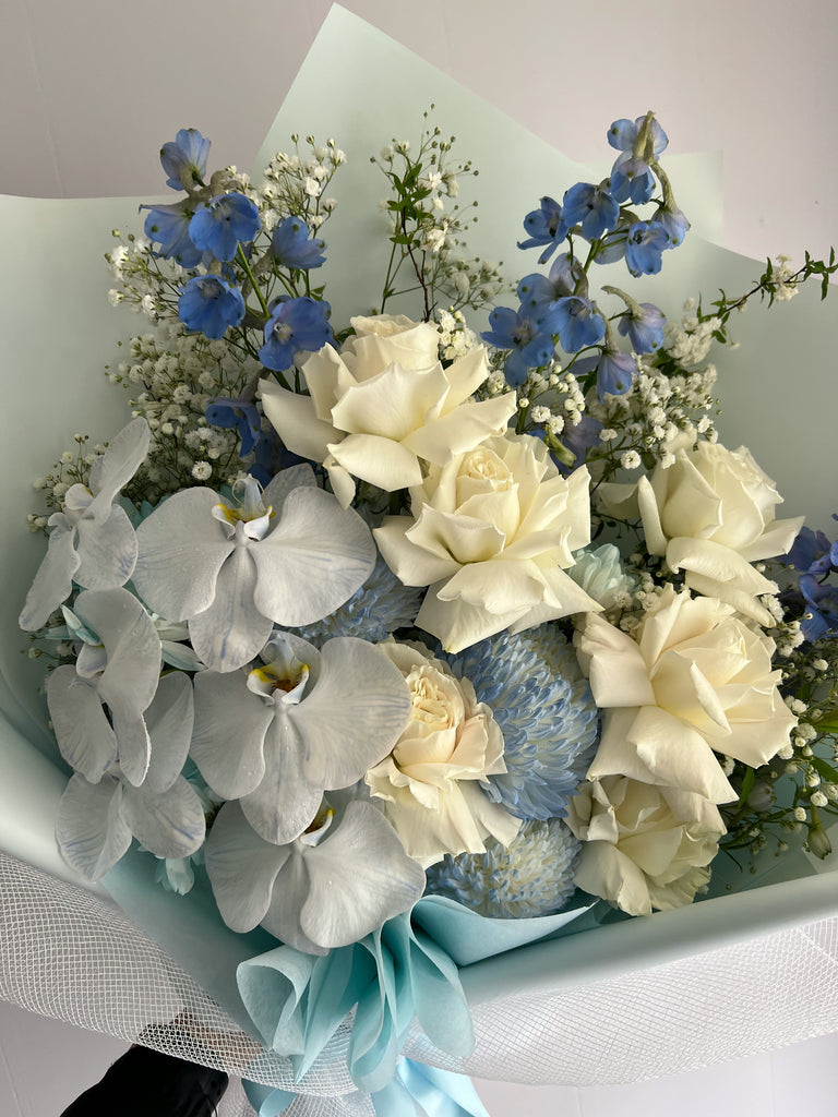 Our most popular bouquet with a mix of all the favourites - Columbian roses, baby's breath, mums, phalaenopsis orchid and more!