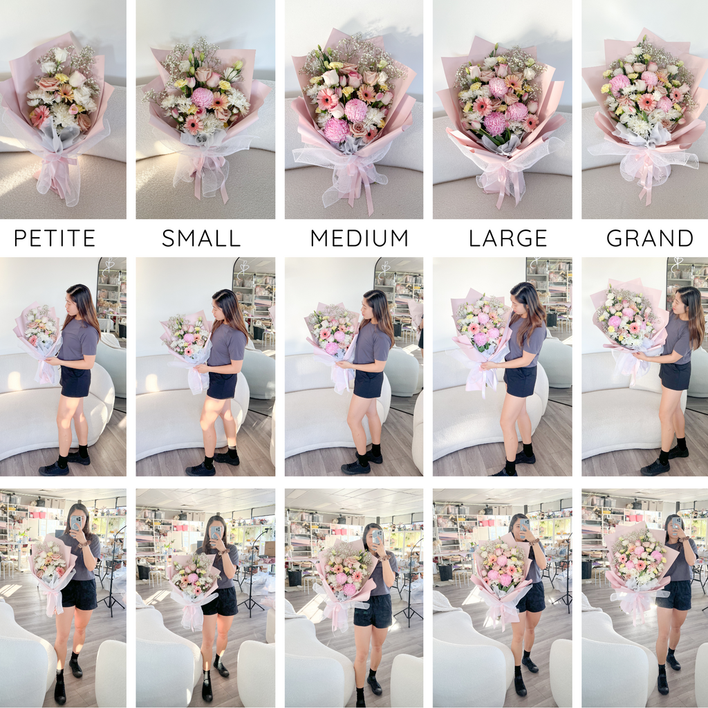 The photos are examples only, we'll use the best flowers available during the time to create something similar! Please note that in the case where some colours may become unavailable, we'll substitute it for something suitable - don't worry, we'll make sure it still looks amazing :)