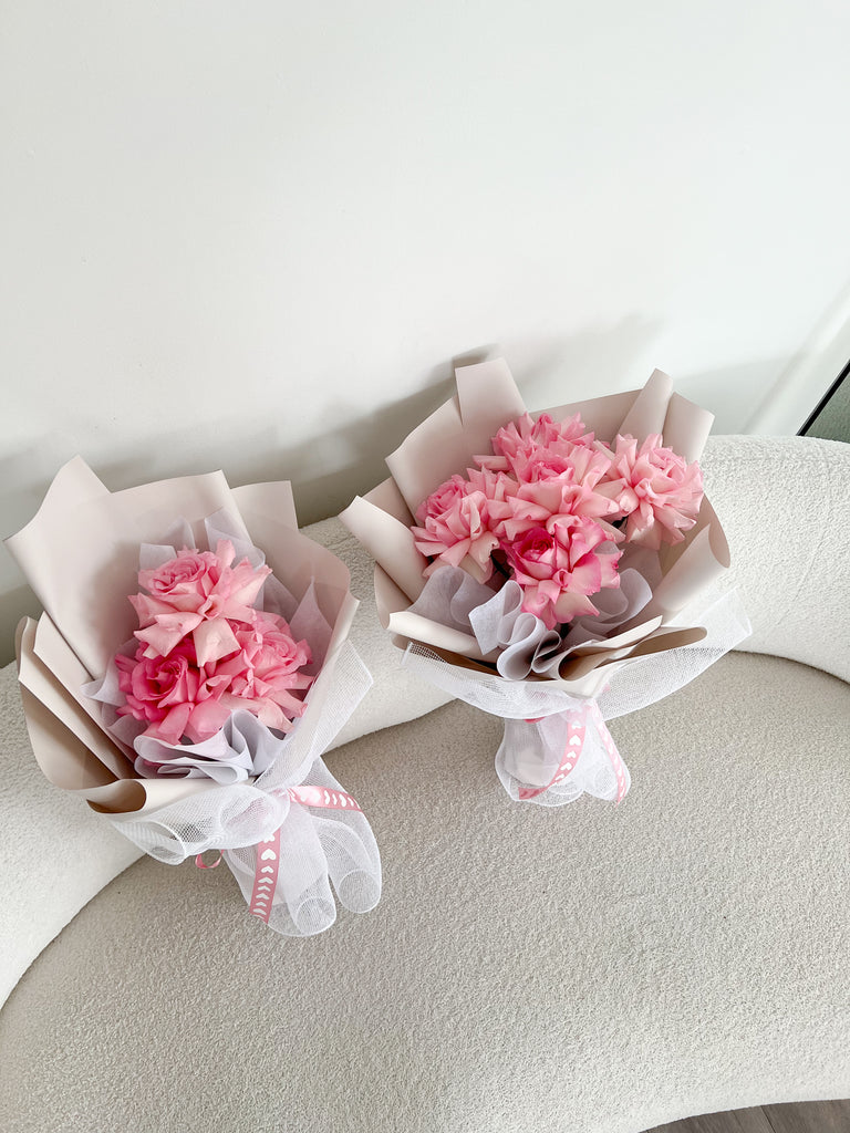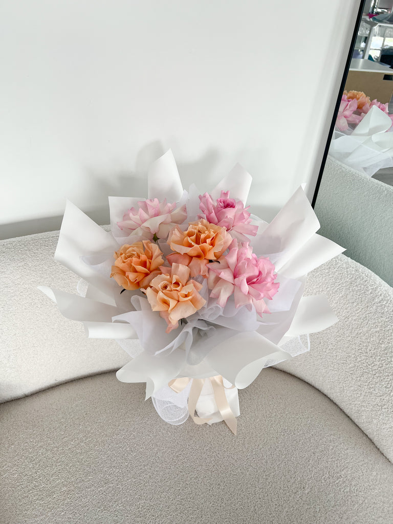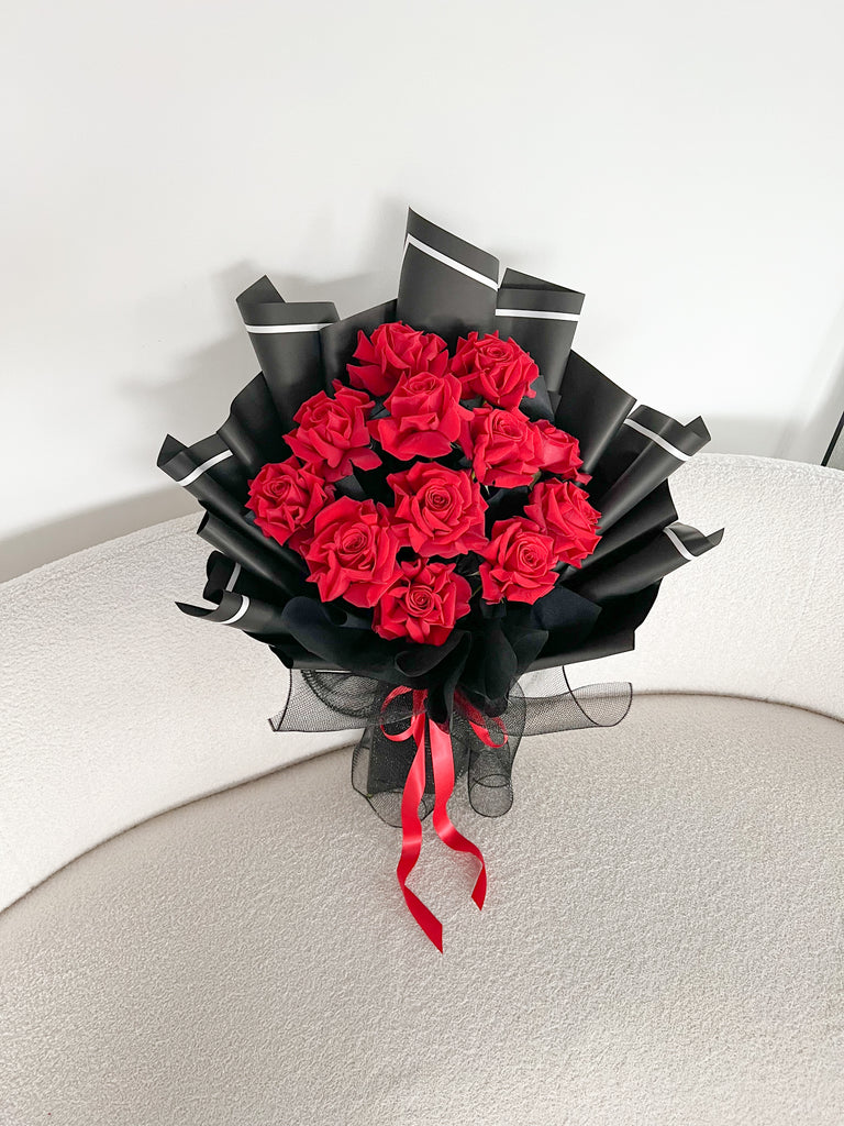 The photos are examples only, we'll use the best roses available to create your desired bouquet! Please note that in the case where some colours may become unavailable, we'll substitute it for something suitable - don't worry, we'll make sure it still looks amazing :)