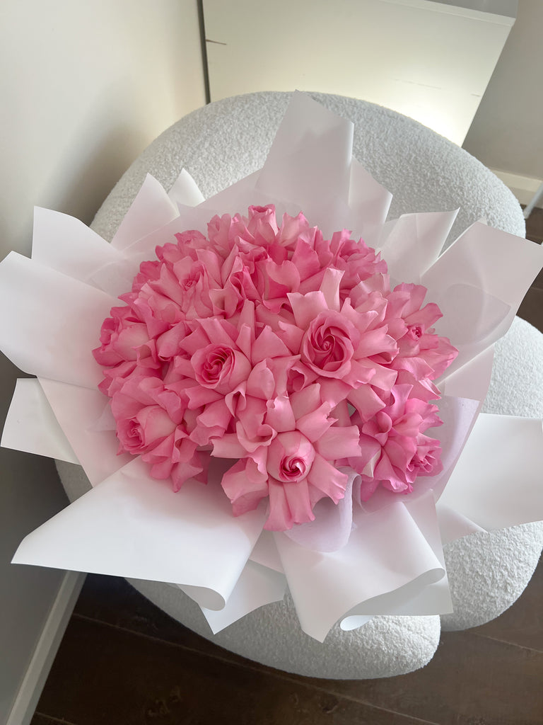 Hand-reflexed Premium Columbian Roses, wrapped in RB's favourite blooming style.