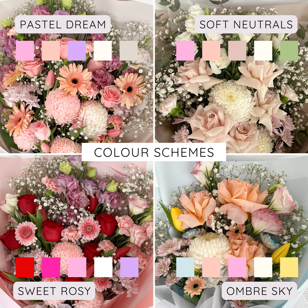 RB's Signature Style Mixed Bouquet comes in 4 different colour choices for Mother's Day this year! Choose from our colour palette (in the next photo above) - or leave it to us.