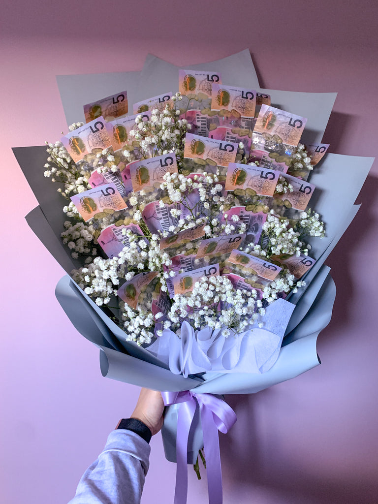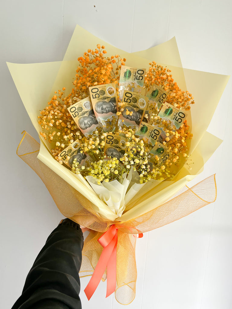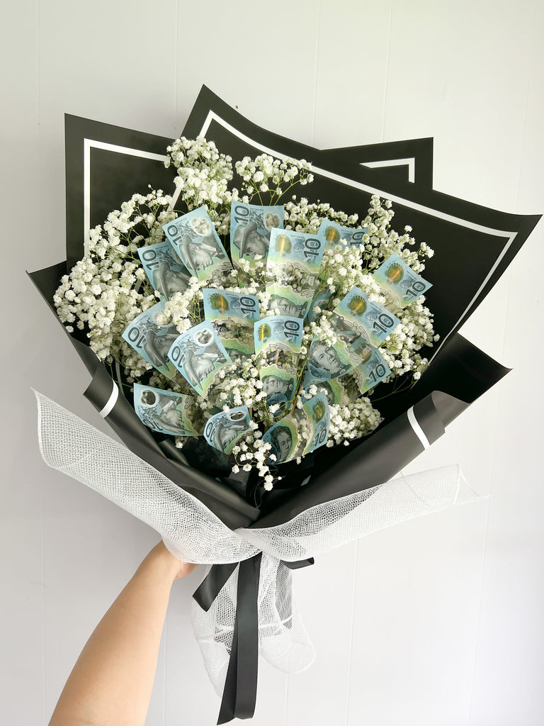 The price does not include the amount of cash in the bouquet. The cash is to be provided at delivery or pick up (we will have it ready made).